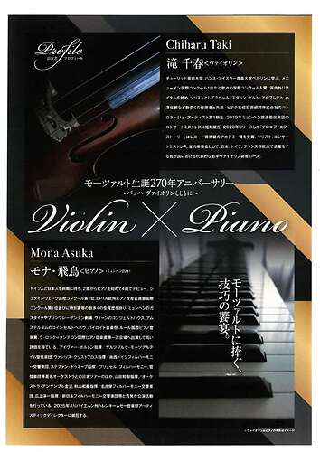 出演:モナ・飛鳥(ピアノ)、滝 千春(ヴァイオリン)