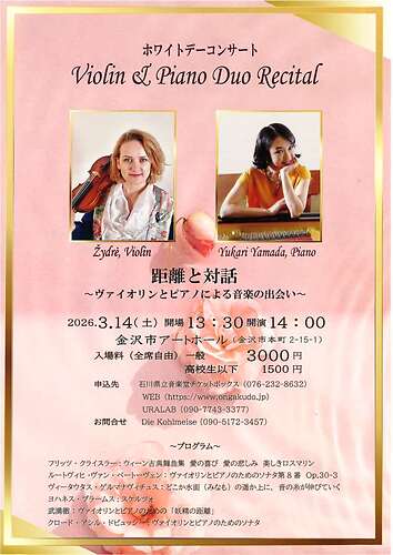 トップページ > イベント情報 > ホワイトデーコンサート Violin & Piano Duo Recital
