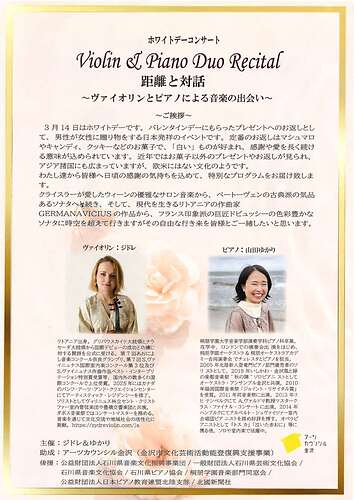 <ホワイトデーコンサート Violin & Piano Duo Recital>