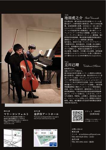 トップページ > イベント情報 > 立川己晴 池田虎之介 ピアノ・チェロ デュオリサイタル